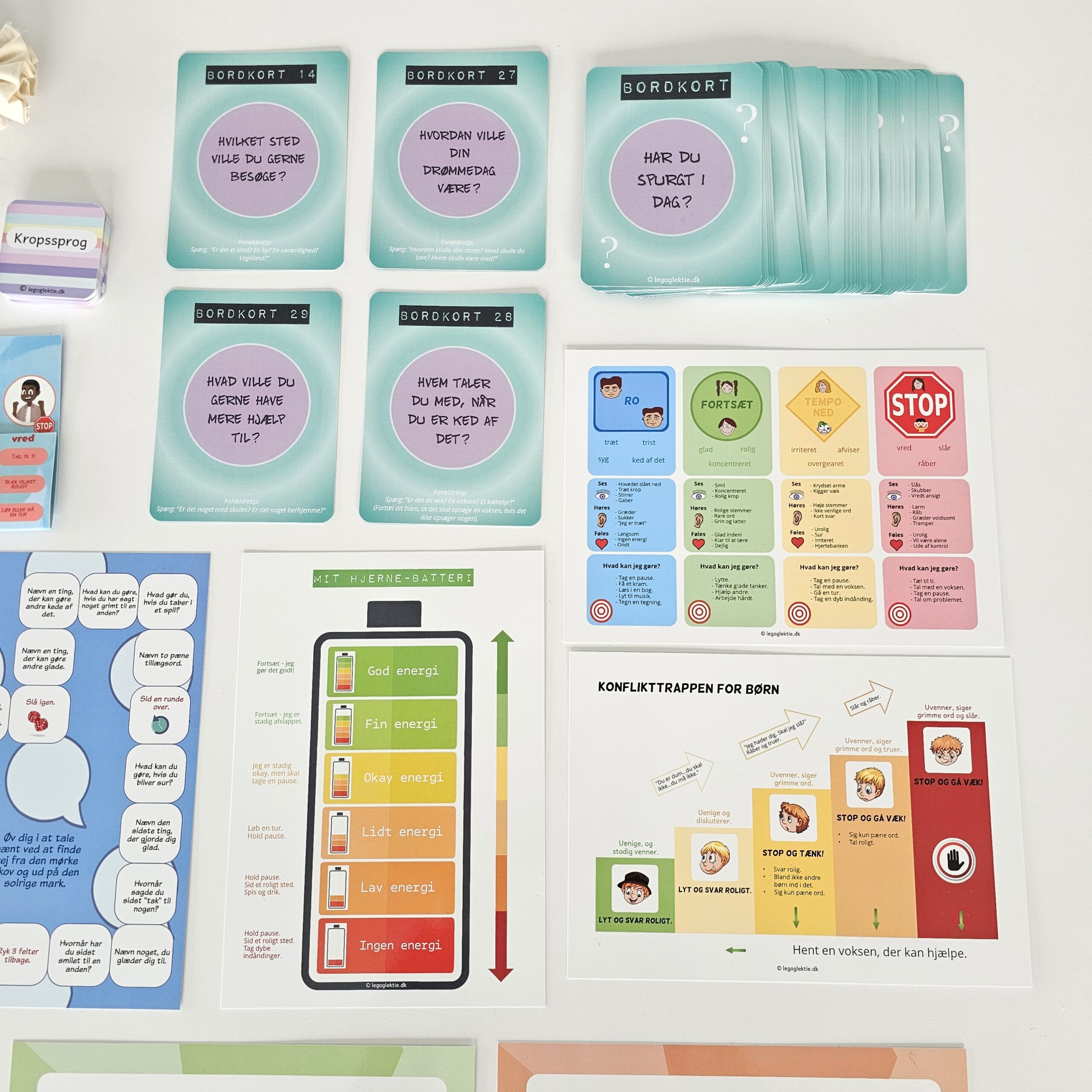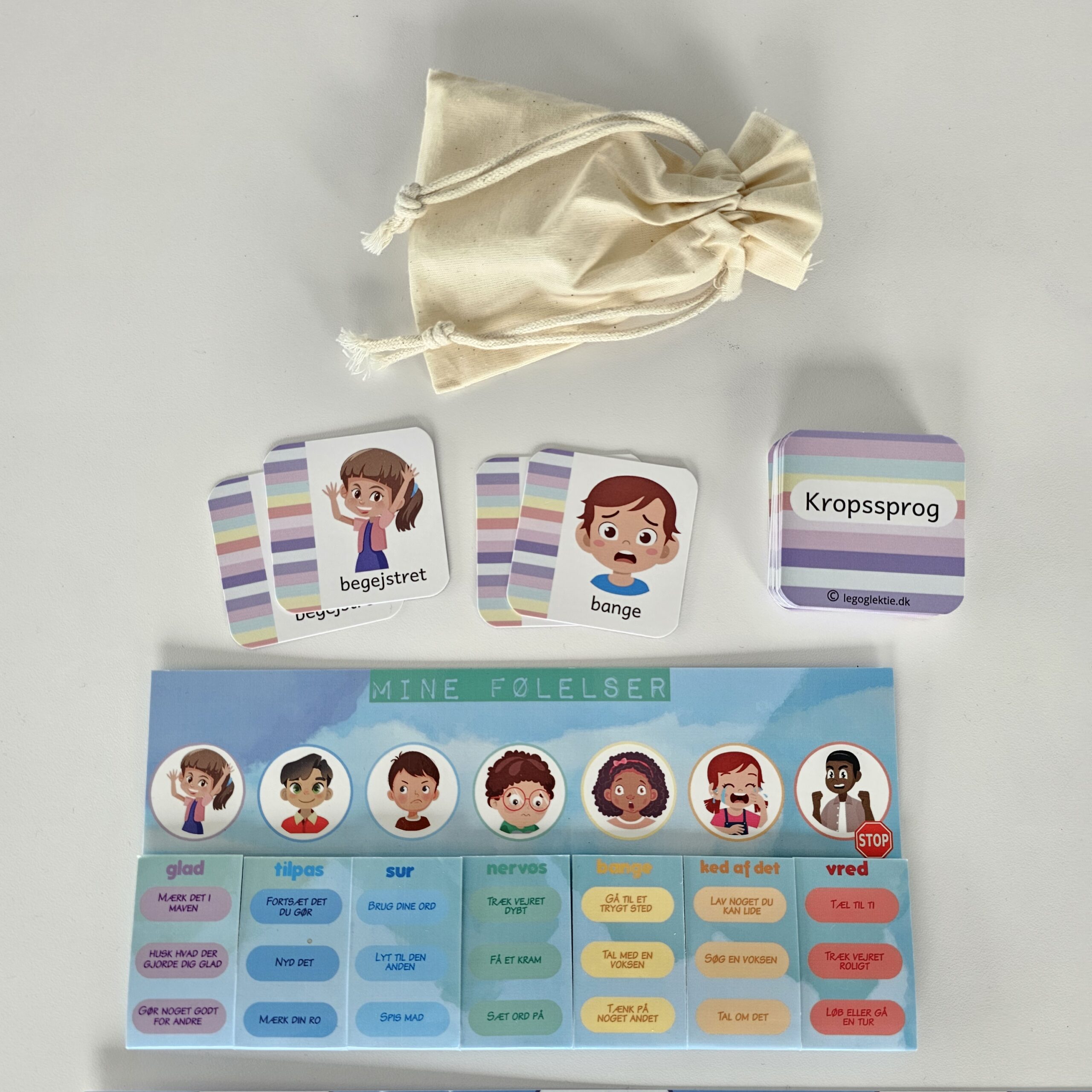 Det er svært for rigtig mange børn at forstå sine egne følelser og sætte ord på dem – faktisk både sine egne, men også at aflæse andres følelser. Vi synes det er så vigtigt, at børn udvikler et sprog omkring følelser og derfor har vi samlet en pakke hvor dit barn kan gøre netop det.