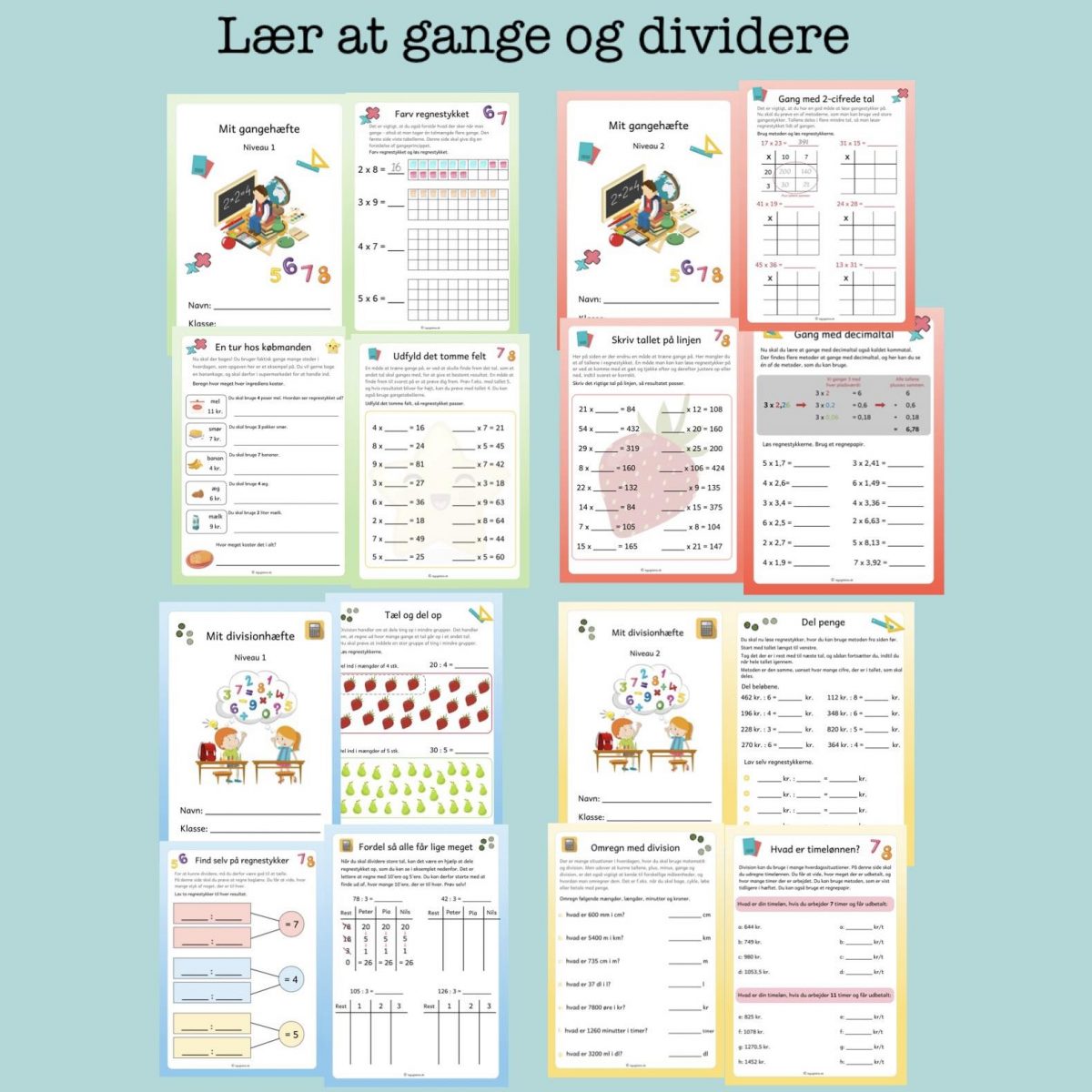 4 hæfter om gange og division – 2 niveauer (Print selv)