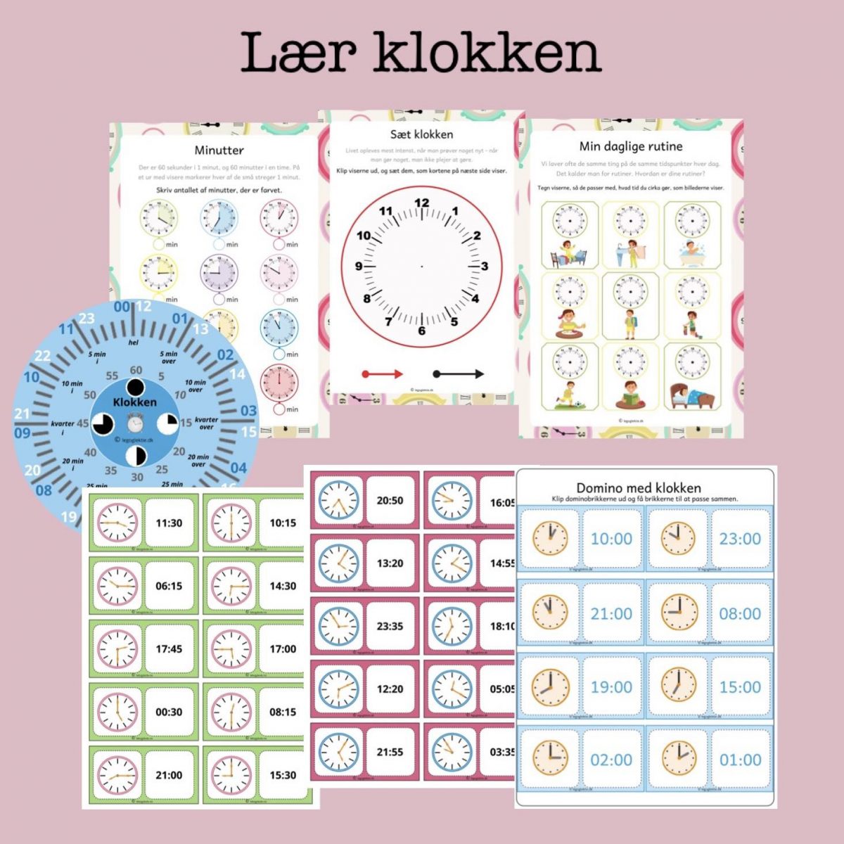Det kan være svært for mange børn at lære klokken. Det kan være svært at finde rundt i 24-timers system, fordi når tallet står samme sted, kan det repræsentere to forskellige tidspunkter. Derfor har vi samlet en pakke med hæfter og spil, så dit barn kan lære klokken og få en tidsfornemmelse.