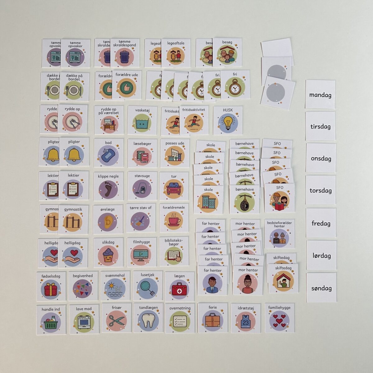 Sættet er identisk med kortene, der følger med til ugeplanen. Som en del af varen medfølger et digitalt hæfte omkring konflikter med børn samt brug af piktogrammer.